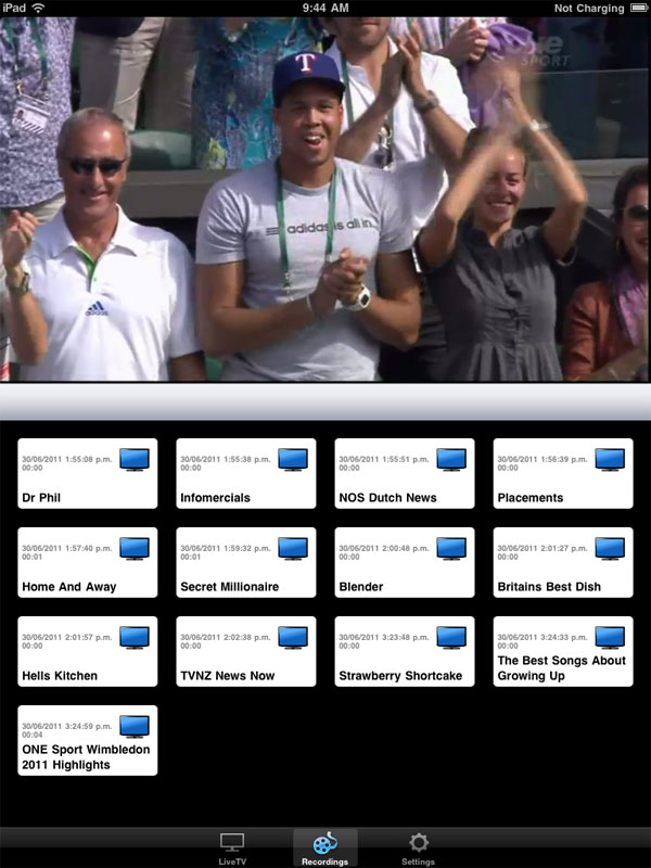 Mit der "WinTV Extend for iPad" App ist es im Gegensatz zum Web-Interface derzeit nicht möglich, Aufnahmen zu planen, wohl aber, vorhandene Aufnahmen wiederzugeben.
