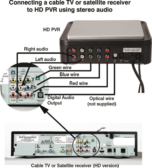 Mit der Hauppauge HD PVR nimmst Du Videos von Kabel- oder SAT-Receivern auf die Festplatte Deines Computers im komprimierten H.264 Format auf. Die HD PVR wird über Component Video (auch als YPrPb bezeichnet), S-Video oder Composite Video mit dem Receiver verbunden und kann in den Auflösungsstufen von SD (Standard Definition - 480i) bis zu HD (High Definition - 1080i) bei Datenraten von 1 MBit/Sekunde bis zu 13MBit/Sekunde aufzeichnen. Die IR-Blaster-Funktion ermöglicht es der Software eigenständig die Kanäle des Receivers oder der Set Top Box zu wechseln.