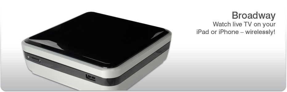 Broadway von PCTV Systems ist ein Fernsehempfänger, der live Fernsehen zum iPhone, iPad, Android Gerät, PC oder Mac streamt – zuhause oder anderswo über das Internet. Stellen Sie sich vor, Sie könnten das Fernsehprogramm Ihrer Heimat auf einem mobilen Gerät in einem Cafe´ in Paris oder in einer Hotel Lobby in Las Vegas schauen. Das ist Fernsehen überall! Mit der Broadway sind die Fernsehprogramme Ihrer Heimat überall verfügbar, wenn Sie unterwegs sind, im Urlaub oder auf Geschäftsreise.